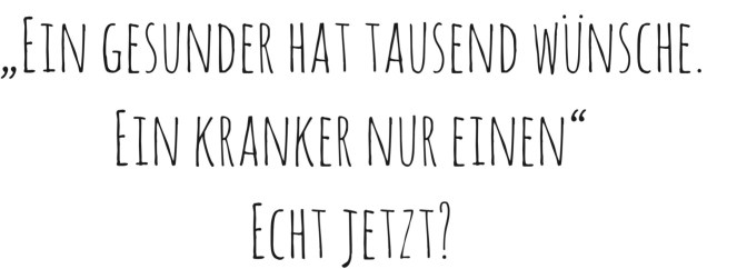 Ein Gesunder hat tausend Wünsche, ein Kranker nur einen-.